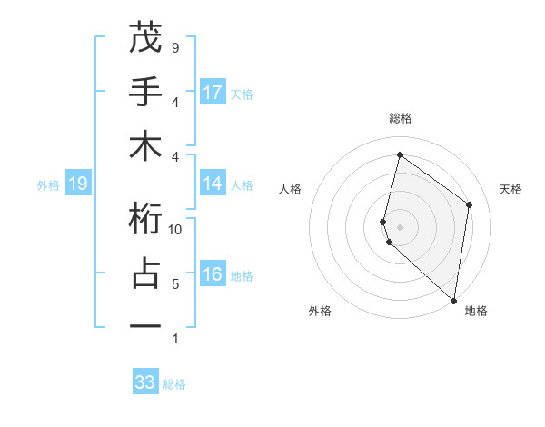茂手木 桁占一さんの地格は16画の5点