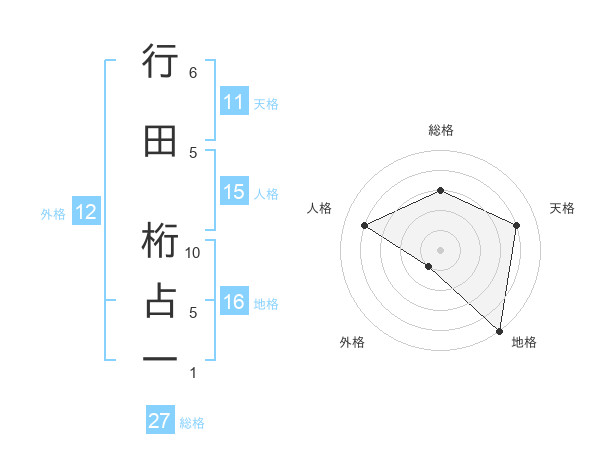 行田 桁占一さんの総格は27画の3点!