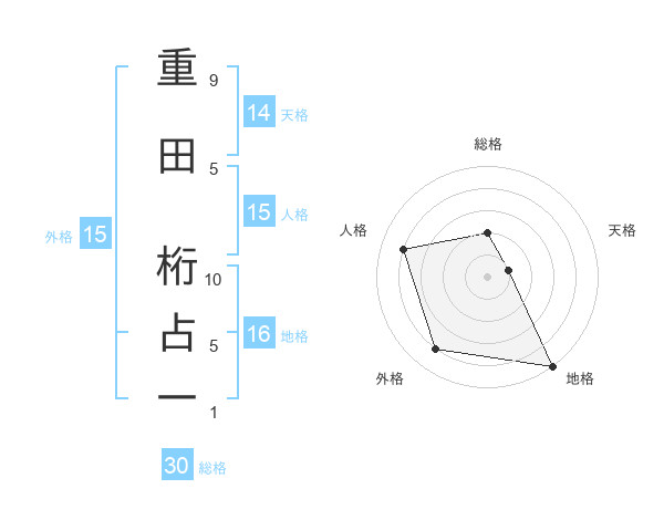 重田 桁占一さんを姓名の画数から五運を鑑定