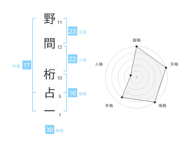 野間 桁占一さんを姓名の画数から五運を鑑定