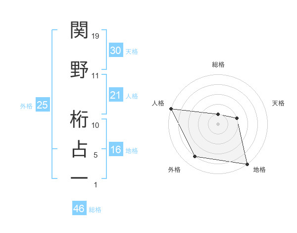 関野 桁占一さんを姓名の画数から五運を鑑定
