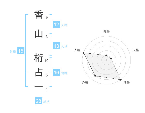 香山 桁占一さんの総格は28画の1点