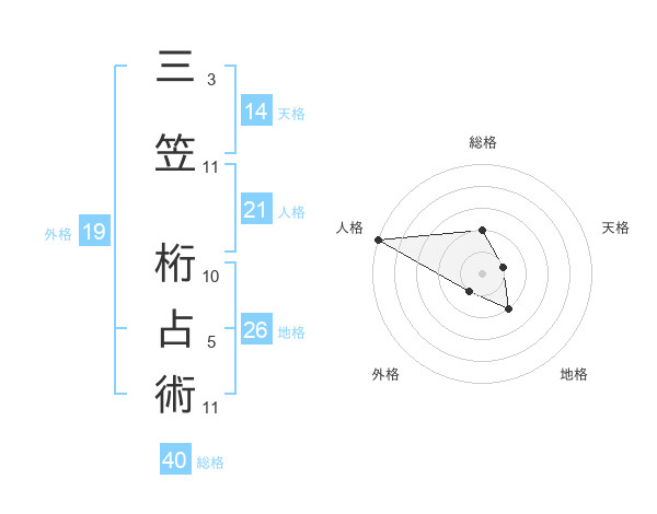 三笠 桁占術さんを姓名の画数から五運を鑑定