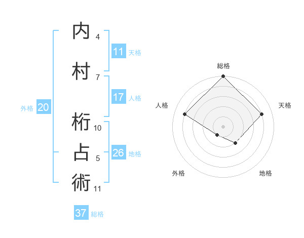 内村 桁占術さんを姓名の画数から五運を鑑定