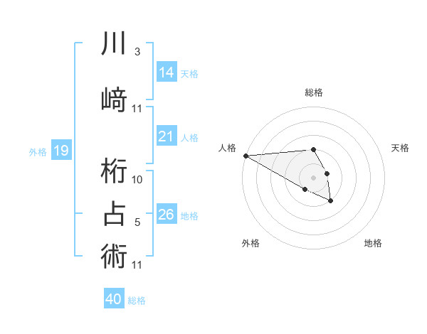 川﨑 桁占術さんの天格は14画の1点!