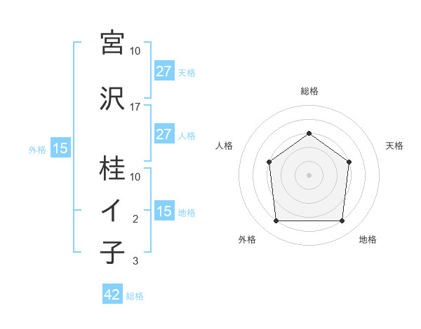 宮沢 桂イ子さんを姓名の画数から五運を鑑定