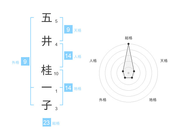 五井 桂一子さんを姓名の画数から五運を鑑定