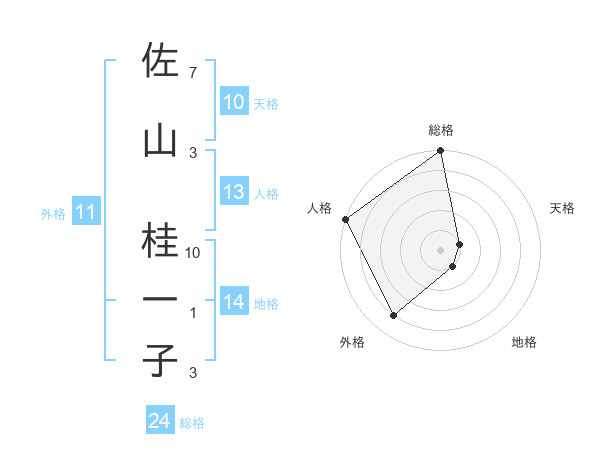 佐山 桂一子さんを姓名の画数から五運を鑑定