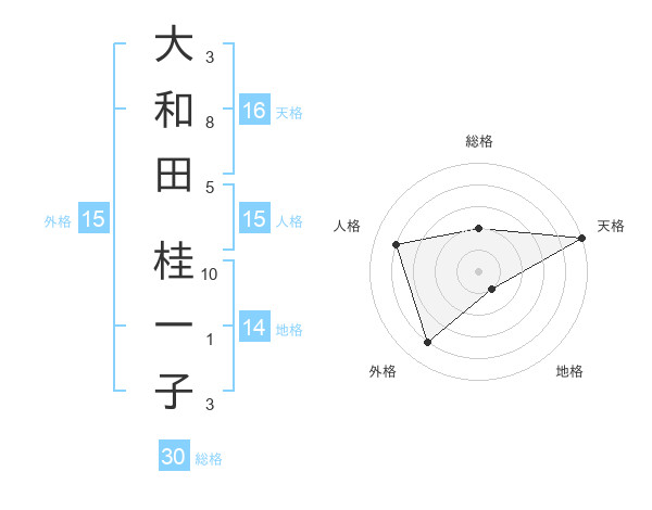 大和田 桂一子さんを姓名の画数から五運を鑑定