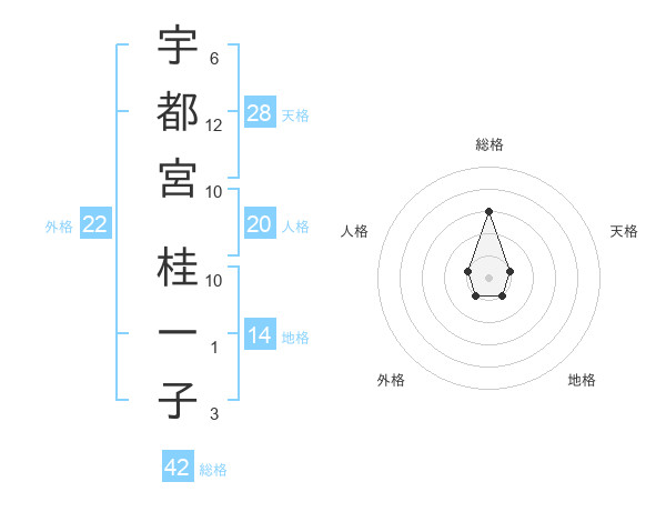 宇都宮 桂一子さんを姓名の画数から五運を鑑定
