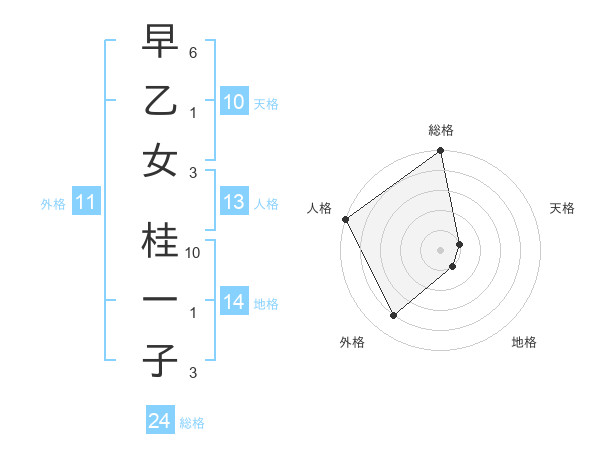 早乙女 桂一子さんを姓名の画数から五運を鑑定