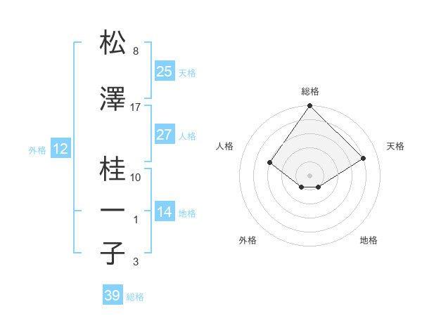 松澤 桂一子さんを姓名の画数から五運を鑑定