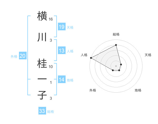 横川 桂一子さんの総格は33画の4点