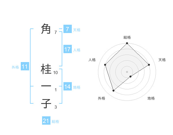 角 桂一子さんの総格は21画の5点!