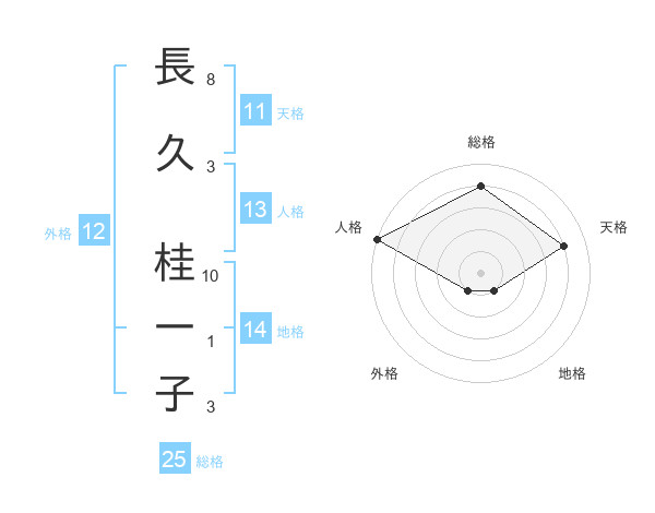 長久 桂一子さんを姓名の画数から五運を鑑定