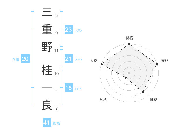 三重野 桂一良さんを姓名の画数から五運を鑑定