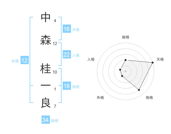 中森 桂一良さんを姓名の画数から五運を鑑定