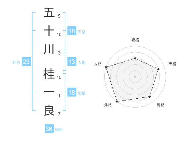 五十川 桂一良さんの人格は13画の5点!