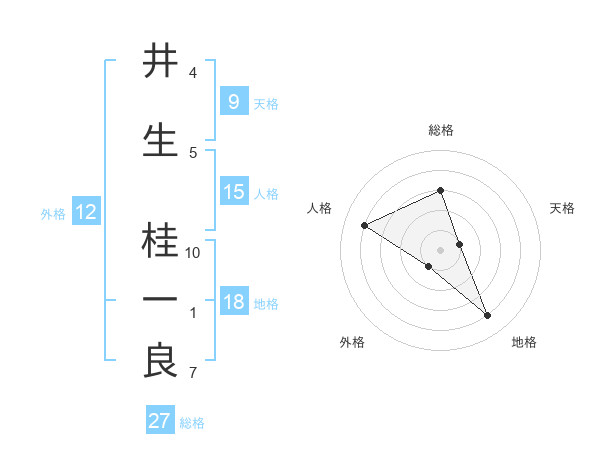 井生 桂一良さんを姓名の画数から五運を鑑定