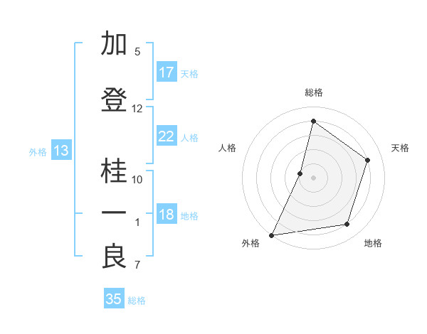 加登 桂一良さんを姓名の画数から五運を鑑定