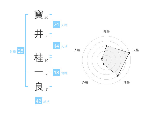 寶井 桂一良さんを姓名の画数から五運を鑑定