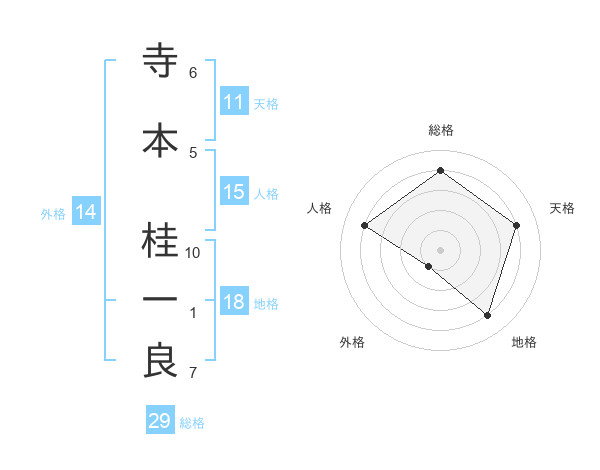 寺本 桂一良さんを姓名の画数から五運を鑑定