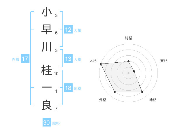 小早川 桂一良さんの総格は30画の2点!
