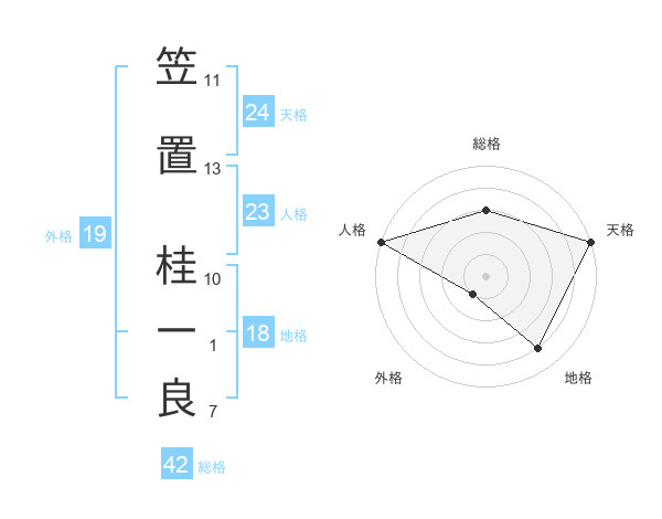笠置 桂一良さんを姓名の画数から五運を鑑定