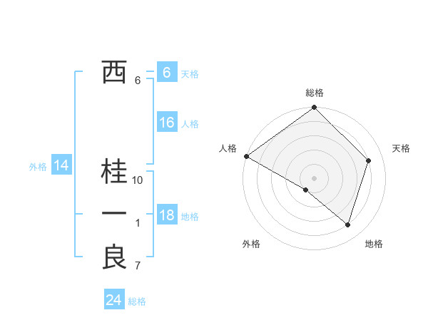 西 桂一良さんの総格は24画の5点!