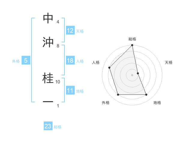 中沖 桂一さんの総格は23画の5点!