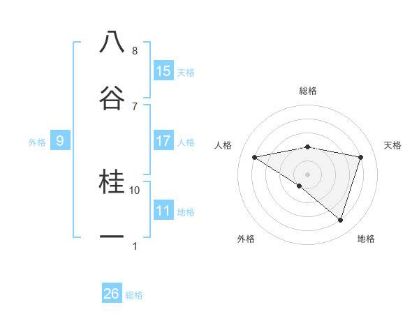 八谷 桂一さんの総格は26画の2点!