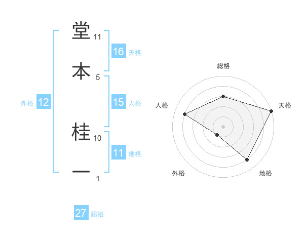 堂本 桂一さんの天格は16画の5点!