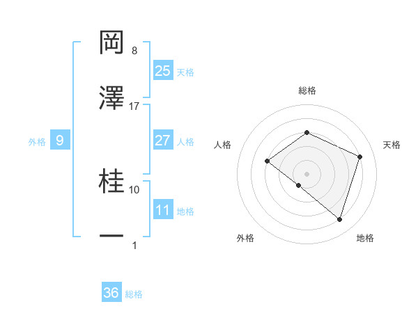 岡澤 桂一さんの天格は25画の4点!