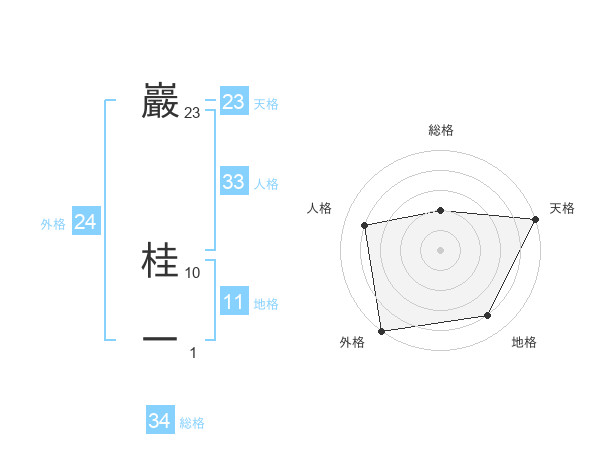 巖 桂一さんの天格は23画の5点!