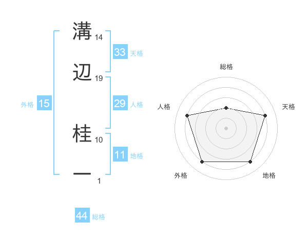 溝辺 桂一さんの天格は33画の4点!