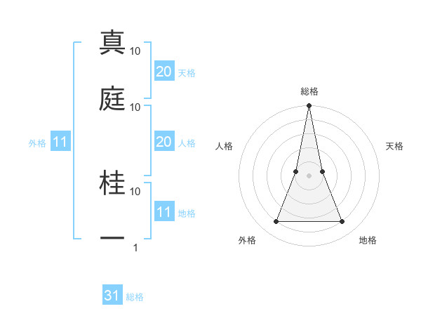 真庭 桂一さんの総格は31画の5点!