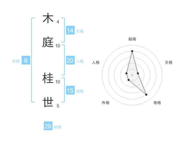 木庭 桂世さんを姓名の画数から五運を鑑定