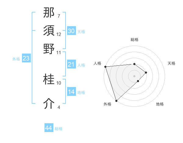 那須野 桂介さんを姓名の画数から五運を鑑定