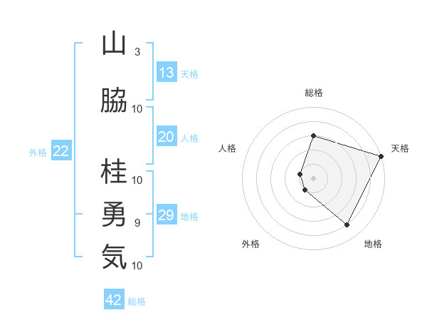 山脇 桂勇気さんを姓名の画数から五運を鑑定
