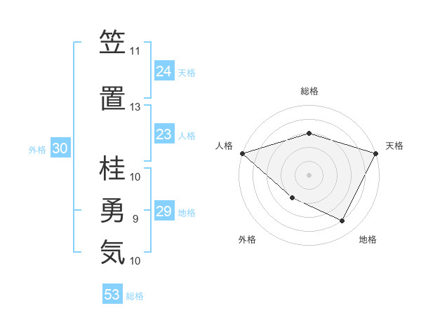 笠置 桂勇気さんを姓名の画数から五運を鑑定
