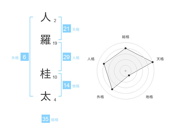 人羅 桂太さんの天格は21画の5点!