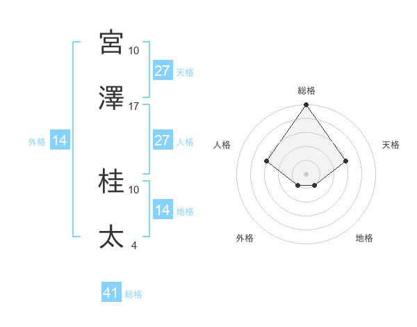 宮澤 桂太さんの総格は41画の5点!