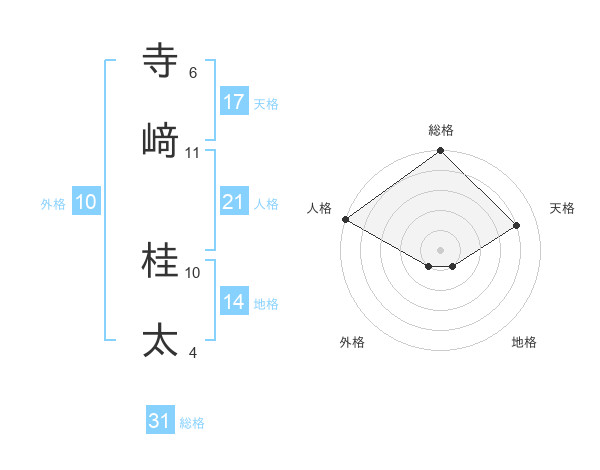寺﨑 桂太さんを姓名の画数から五運を鑑定