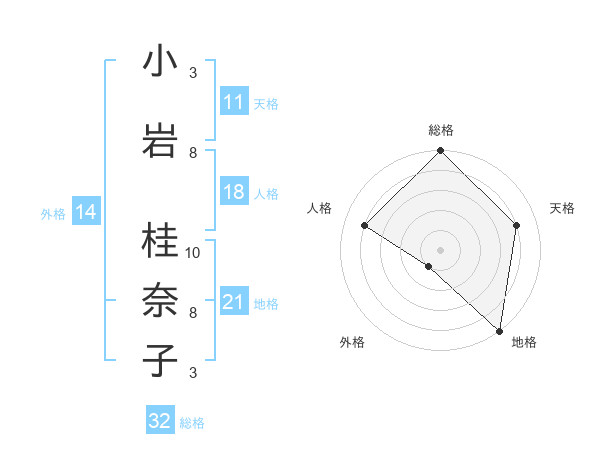 小岩 桂奈子さんを姓名の画数から五運を鑑定