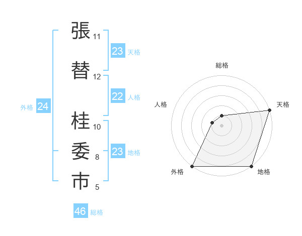 張替 桂委市さんの総格は46画の1点!