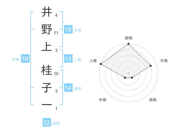 井野上 桂子一さんを姓名の画数から五運を鑑定