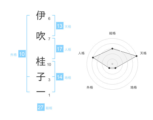伊吹 桂子一さんの天格は13画の5点!