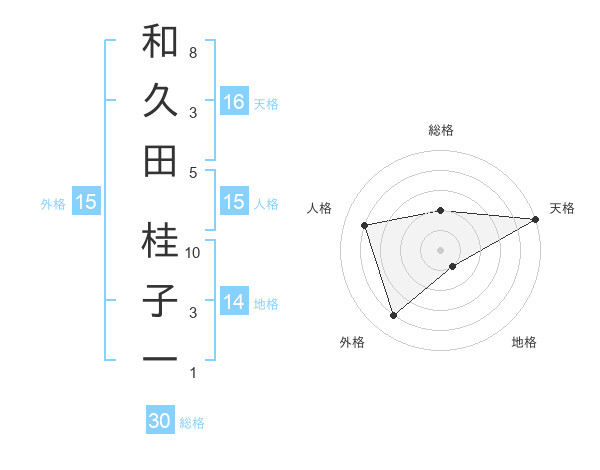 和久田 桂子一さんを姓名の画数から五運を鑑定
