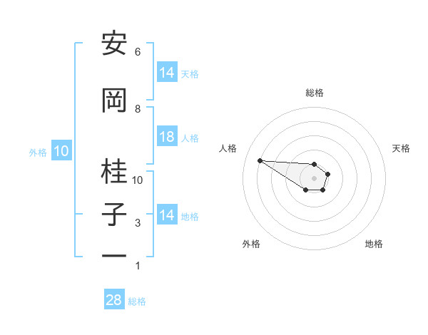 安岡 桂子一さんを姓名の画数から五運を鑑定