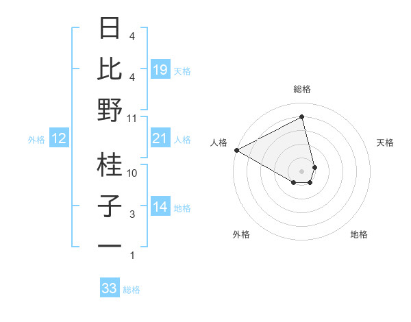 日比野 桂子一さんを姓名の画数から五運を鑑定